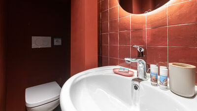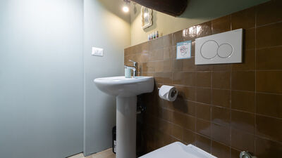 Im Erdgeschoss befindet sich die Küche, die sich durch einen modernen Stil und warme Töne auszeichnet, die eine gesellige und entspannte Atmosphäre schaffen. Es ist komplett ausgestattet und mit allem ausgestattet, was Sie für die Zubereitung Ihrer Lieblingsgerichte benötigen. Auf der gleichen Etage befindet sich auch ein modernes und funktionales Badezimmer.
