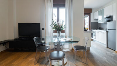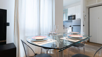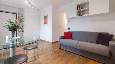 Das Apartment wurde auf intelligente und einladende Weise entwickelt und verfügt über ein intimes und privates Schlafzimmer, das maximale Entspannung nach den Tagen in Mailand garantiert. Das helle und luftige Wohnzimmer bietet den perfekten Ort, um sich zu entspannen und Aktivitäten in der Stadt zu planen, während sich der Wohnbereich harmonisch in die anderen Räume integriert. Das Schlafsofa bietet Platz für bis zu 4 Personen. Die separate Küche ist praktisch und gut ausgestattet und eignet sich ideal für die Zubereitung eines energischen Frühstücks vor der Erkundung Mailands oder für ein entspanntes Abendessen nach einem Arbeits- oder Besichtigungstag. Das moderne und funktionale Badezimmer bietet alle notwendigen Einrichtungen für einen komfortablen Aufenthalt. Ein kleiner Balkon mit Tisch und Stühlen mit Blick auf das Innere des Innenhofs und die neue Skyline der Gegend vervollständigt die Ausstattung der Wohnung.
