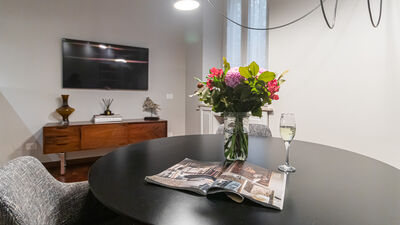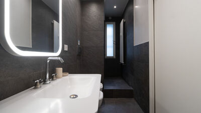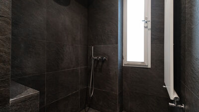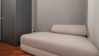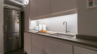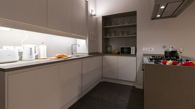 Die Wohnung verfügt über ein großes und ruhiges Schlafzimmer mit Doppelbett und ein zweites Schlafzimmer mit einem Doppelfuton, ideal als Zimmer für Freunde oder Kollegen. Der Wohnbereich öffnet sich zu einem großen Wohnzimmer mit Essbereich und einer leicht erhöhten modernen Küche, die über eine Stufe zugänglich ist. Die Küche ist elegant und funktionell eingerichtet und mit einem Herd, einem Backofen, einem Geschirrspüler und allem ausgestattet, was Sie für die bequeme Zubereitung von Mahlzeiten benötigen. Das Haus wird durch ein modernes, geräumiges Badezimmer mit hochwertigen Materialien vervollständigt, das mit einer großen Dusche und allem notwendigen Komfort ausgestattet ist.