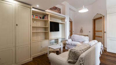 Die Wohnung bietet Platz für bis zu 4 Personen und verfügt über zwei geschmackvoll eingerichtete Schlafzimmer, beide mit Balkon, ideal, um einen Moment der Entspannung im Freien zu genießen und dabei die Skyline zu bewundern. Das Wohnzimmer, das Herzstück des Hauses, ist so konzipiert, dass es dank der zwei bequemen Sofas Geselligkeit und Momente der Entspannung fördert, perfekt zum Reden oder Ausruhen nach einem Tag, der der Entdeckung der Stadt gewidmet ist. In der voll ausgestatteten Küche können Sie jede Art von Mahlzeit zubereiten, und das moderne Badezimmer garantiert Funktionalität und Komfort.