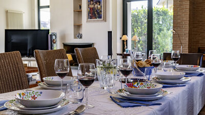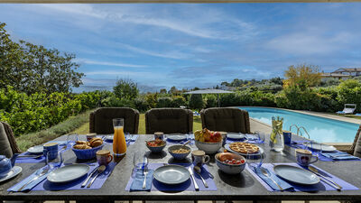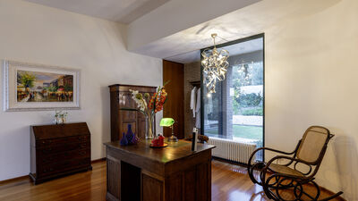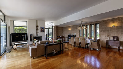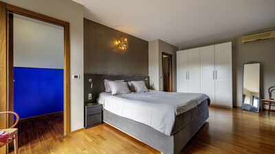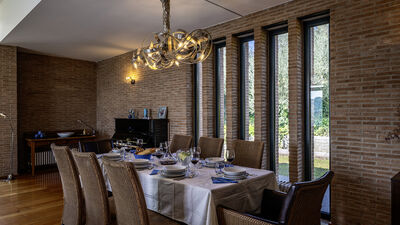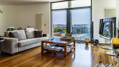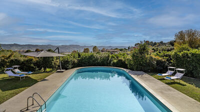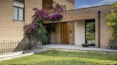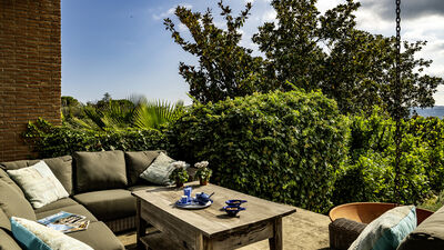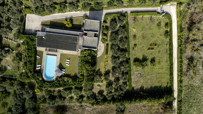 Die Villa ist von einem etwa 8000 Quadratmeter großen Park umgeben, der teilweise eingezäunt ist und in dem Oliven- und Obstbäume hervorstechen. Die Veranda, die sich auf der Rückseite erstreckt, ist mit einer Sitzecke und einem Esstisch ausgestattet. In der Nähe befinden sich ein tragbarer Grill und ein traditioneller Grill für Kebabs. Am Ende der Auffahrt des Grundstücks befindet sich ein Parkplatz für drei nicht überdachte Parkplätze. Es gibt auch eine Garage für zwei überdachte Parkplätze (Garagenabfahrt nicht für Sportwagen geeignet). Hinweis: Bitte beachten Sie, dass die Fotoshootings in der Regel im Frühling stattfinden, sodass die Farben und Blüten der Gärten, Rasenflächen und Parks beim Betreten der Villa unterschiedlich sein können.