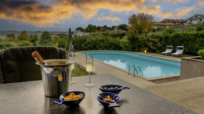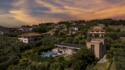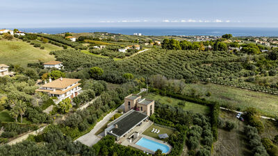 Die Villa Amyra befindet sich in der ruhigen Wohngegend von Città Sant'Angelo und bietet eine Oase der Ruhe und des modernen Komforts. Die Villa zeichnet sich durch ihr zeitgenössisches Design mit Blockvolumina aus, die die Innenräume definieren und ein Gleichgewicht zwischen Funktionalität und Ästhetik schaffen. Die Zimmer sind groß und hell und verfügen über große Fenster, die das natürliche Licht und den Blick auf die Landschaft verbessern. Die Aufteilung auf mehrere gestaffelte Ebenen verleiht dem Haus Bewegung und Persönlichkeit. Zwischen dem Erdgeschoss und dem ersten Stock befinden sich drei Doppelschlafzimmer mit eigenem Bad und ein Arbeitszimmer mit Schlafcouch. Das Untergeschoss ist der Freizeit gewidmet und verfügt über einen ausgestatteten Spielbereich. Draußen befinden sich im Garten der schöne Salzpool und eine möblierte Veranda. Die Villa Amyra liegt auf einem sanften Hügel und genießt eine privilegierte Lage zwischen Meer und Bergen mit atemberaubendem Blick auf die Adriaküste und das Maiella-Massiv. Dies ist ein idealer Ausgangspunkt, um das Meer der Abruzzen zu erleben und die Landschaften des Maiella-Nationalparks zu entdecken.