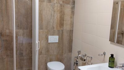 Dusche, WC, Waschbecken